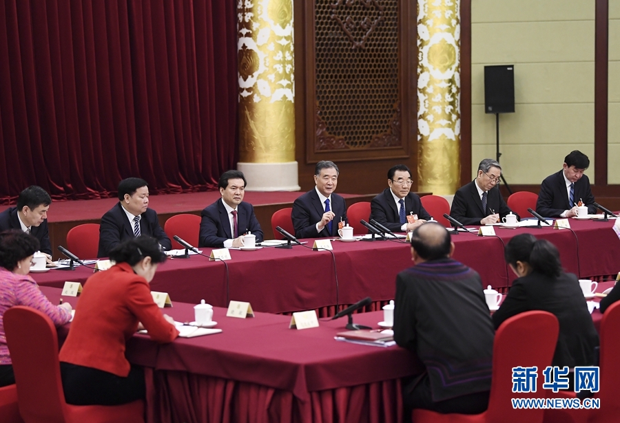 3月6日,中共中央政治局常委、全國政協十三屆一次會議主席團會議主持人汪洋參加全國政協十三屆一次會議少數民族界委員聯組會的討論。