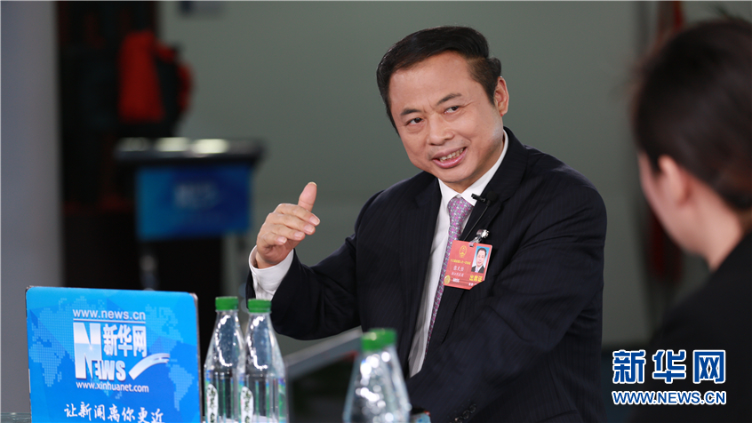 3月9日,全國人大代表,全國工商聯(lián)執(zhí)委、浙江省工商聯(lián)副主席、天能集團董事長張?zhí)烊巫隹托氯A網2018全國兩會特別訪談。新華網 楊锘攝