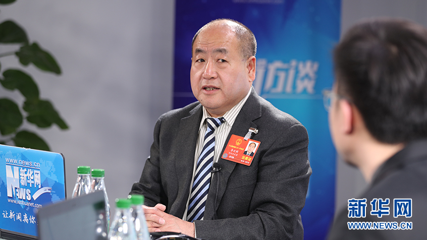 3月15日,全國人大代表、頸復康藥業集團董事長李沈明(左)做客新華網2018全國兩會特別訪談。新華網 郭小天攝