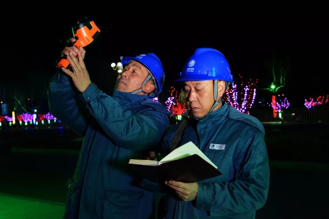 2019-01-28,山東濟(jì)南濟(jì)陽(yáng)區(qū)。春節(jié)節(jié)前,電力員工對(duì)供電線路進(jìn)行夜巡測(cè)溫,及時(shí)掌握線路設(shè)備的運(yùn)行狀況,為全區(qū)居民春節(jié)期間可靠用電做好準(zhǔn)備。作者:CBT