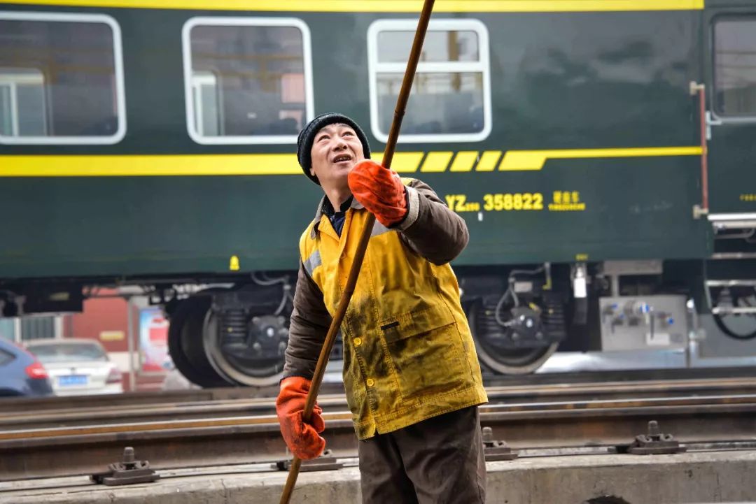 2019-02-01,河南鄭州火車站。“錘叔”鄭獻(xiàn)敏是鄭州車輛段的職工,38年來,他忙碌于站臺(tái)上,穿梭于股道間,用一把小小的檢車錘確保著南來北往的旅客的乘車安全。作者:趙慶