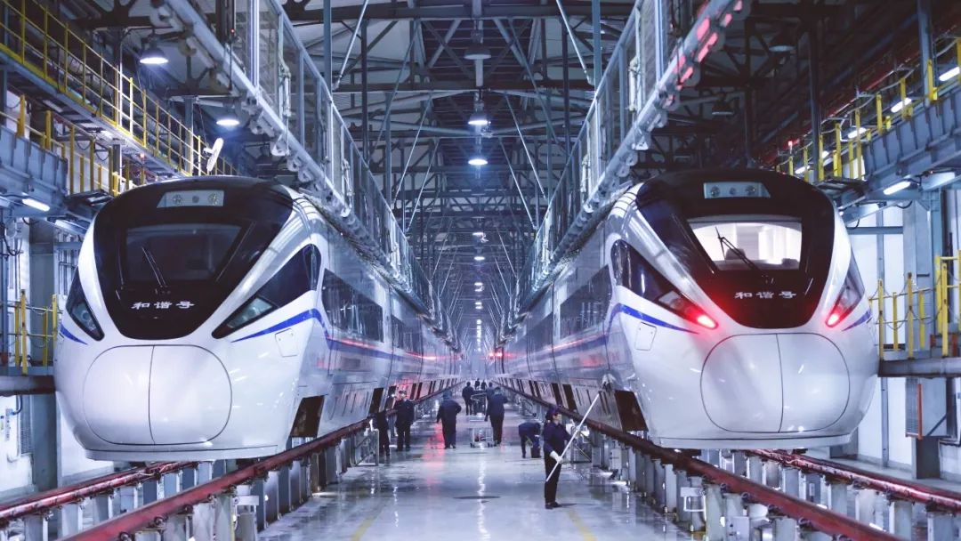 2019-01-08,福建福州。凌晨兩點(diǎn),在福州南動(dòng)車所內(nèi),機(jī)械師和保潔員們還在忙著檢修清潔動(dòng)車組,確保第二天準(zhǔn)時(shí)上線。作者:嗯叮