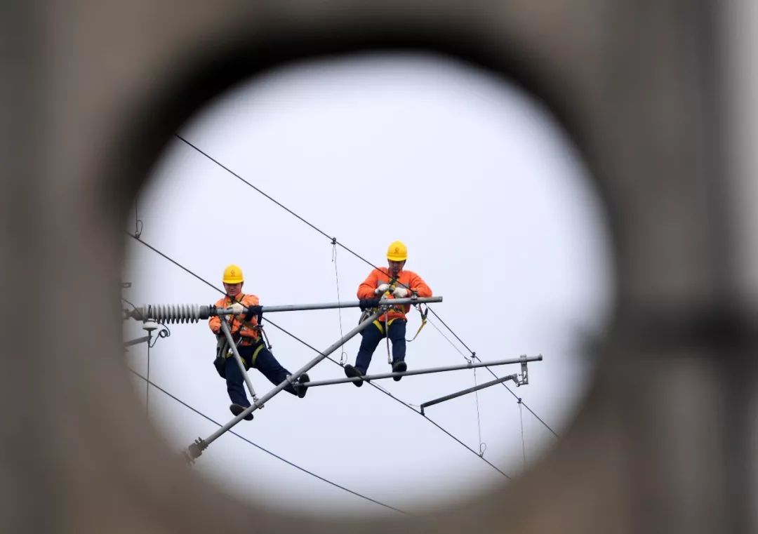 2019-02-06,江西九江。中國鐵路南昌局集團(tuán)有限公司南昌供電段的職工在武九鐵路瑞昌區(qū)段檢修保養(yǎng)接觸網(wǎng)設(shè)備,以迎接節(jié)后鐵路運(yùn)輸高峰。作者:江山如畫