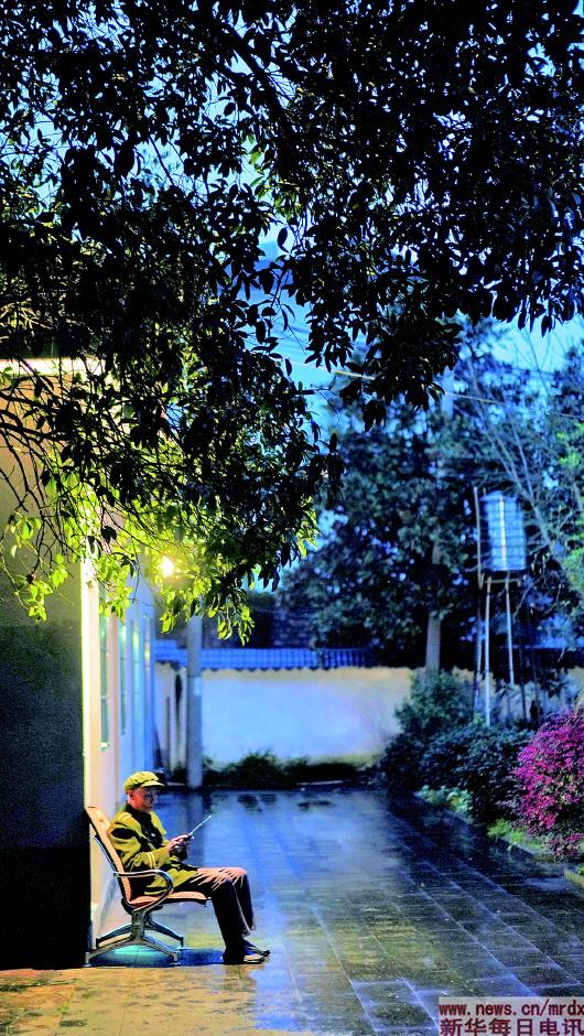 3月27日傍晚,程樟柱在紀念館內(nèi)聽收音機。