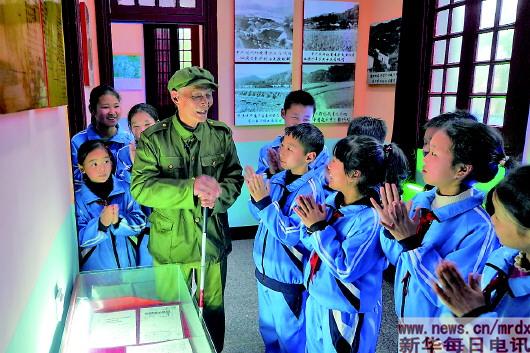 3月28日,程樟柱在紀念館內(nèi)給前來參加傳統(tǒng)革命教育的學生講故事。