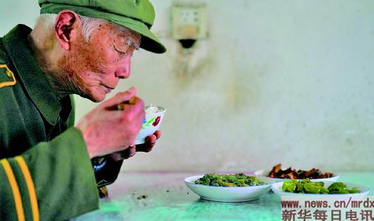 3月27日,程樟柱在屋內(nèi)吃飯。