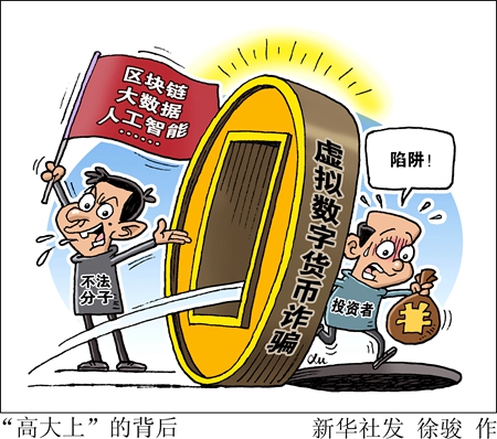 虛擬數字貨幣、區塊鏈、大數據、人工智能……近幾年流行起來的“高大上”新名詞,被一些不法分子“盯上”,包裝成了一個個騙局。湖南衡陽公安機關日前破獲一起以虛擬數字貨幣為幌子的網絡詐騙案,涉案金額達3億余元,截至目前已有23人被刑事拘留。虛擬數字貨幣詐騙案的背后,隱藏著不少騙人的“套路”,應引起警惕。有專家建議,對于這類新興金融投資領域,還應加強誠信建設和規則制定。