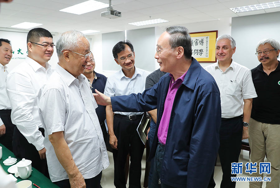 8月29日至31日,國家副主席王岐山在廣東調研。這是8月31日,王岐山在中山大學與學者代表座談。 新華社記者 姚大偉 攝