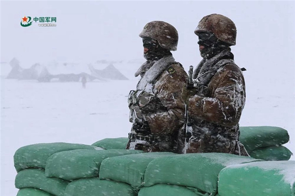 2017年12月6日,西藏軍區某部官兵在風雪中仍然堅守在海拔4700米的邊防哨。