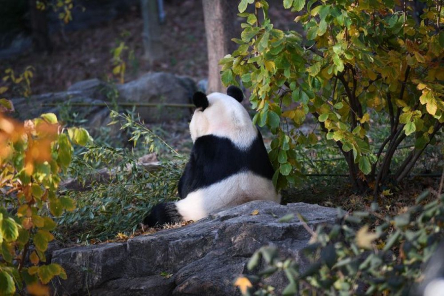 11月13日,“貝貝”在位于華盛頓的美國國家動(dòng)物園內(nèi)的“銷魂”背影。新華社記者劉杰攝