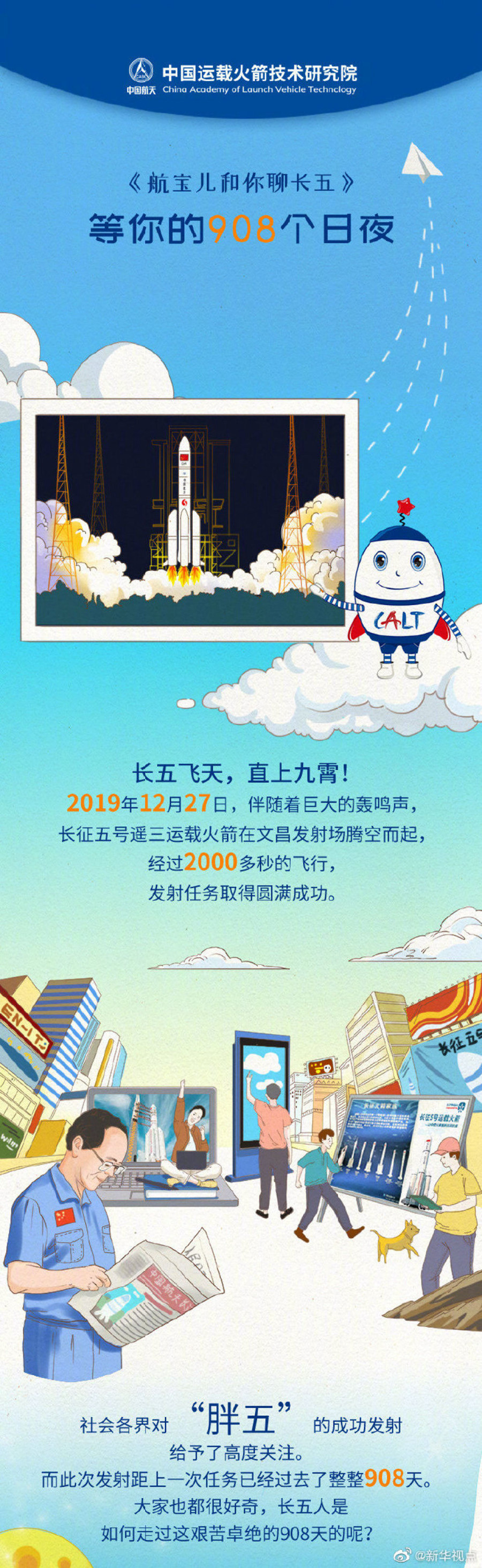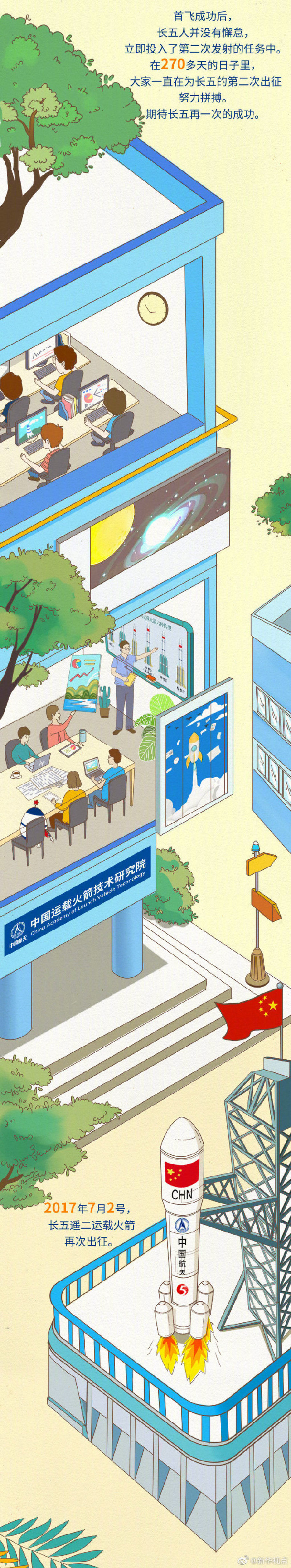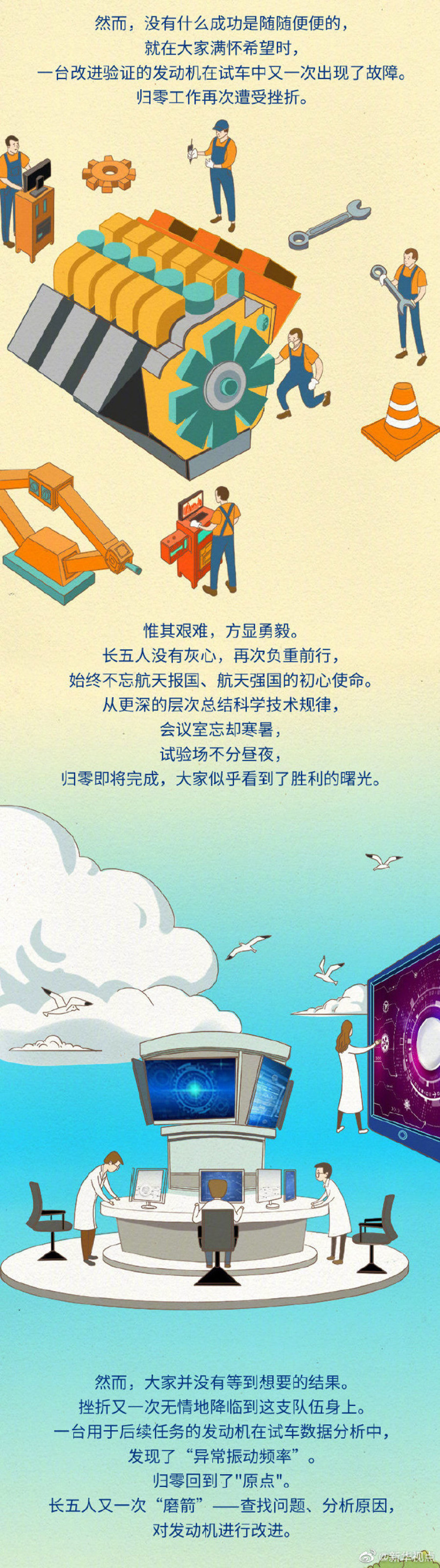 長(zhǎng)征五號(hào)身后正是有一群航天人,他們數(shù)十年如一日,馴火牧天、攜山攬海,眼里盡是星辰和遠(yuǎn)方。