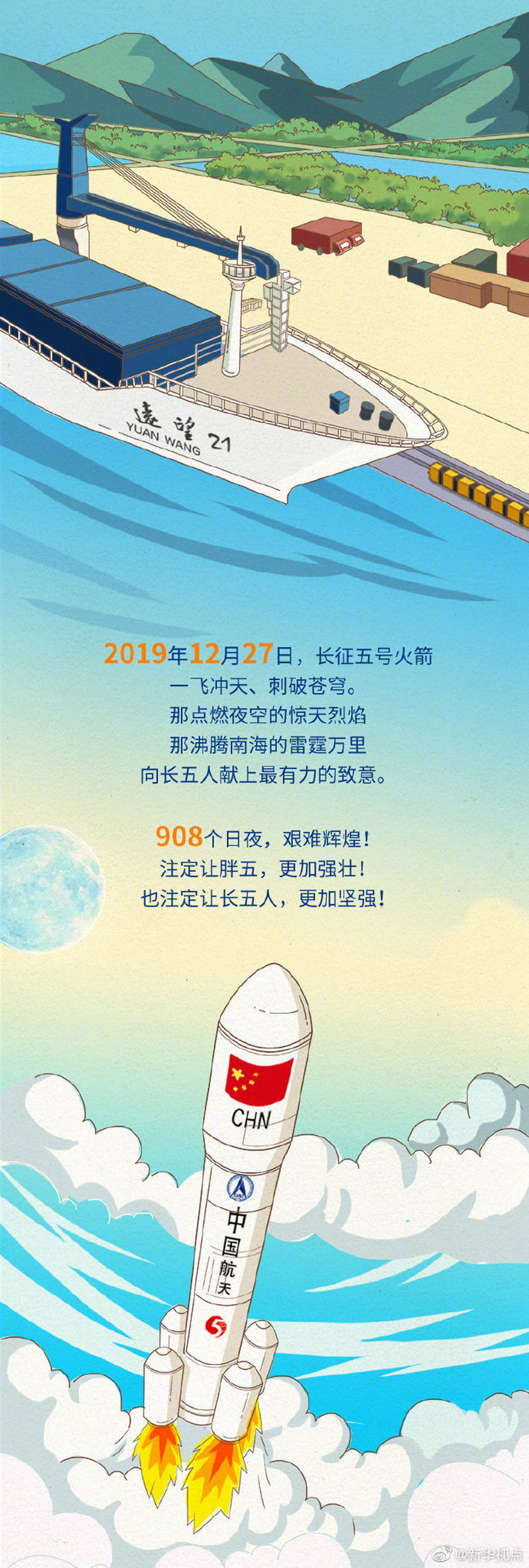 南海之濱,今夜無(wú)眠。長(zhǎng)征五號(hào)再度啟航,承載著無(wú)數(shù)中國(guó)人的光榮與夢(mèng)想,開辟了中國(guó)通往太空更加寬廣的天梯。
