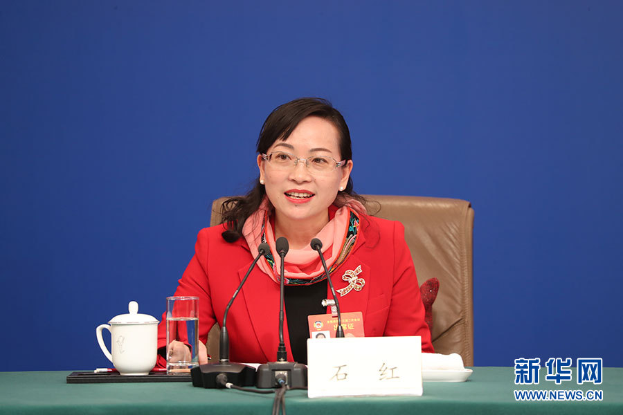 全國政協十三屆二次會議3月10日(星期日)上午8:45在梅地亞兩會新聞中心舉行記者會,邀請5位政協委員就“新時代政協履職”回答記者提問。新華網、中國政府網進行現場直播。圖為全國政協委員、湖南省湘西土家族苗族自治州政協副主席石紅。新華網/中國政府網 陳杰攝