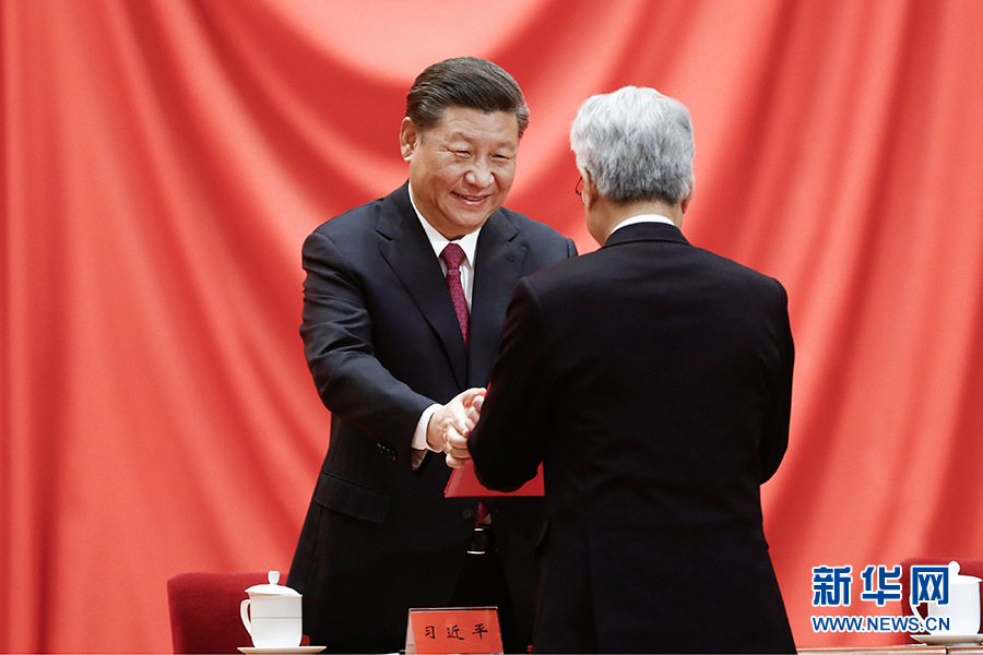 1月10日,2019年度國家科學(xué)技術(shù)獎勵大會在北京人民大會堂隆重舉行。這是習(xí)近平等黨和國家領(lǐng)導(dǎo)人同獲得2019年度國家最高科學(xué)技術(shù)獎的原中國船舶重工集團(tuán)公司第七一九研究所黃旭華院士和中國科學(xué)院大氣物理研究所曾慶存院士一道,為獲得國家自然科學(xué)獎、國家技術(shù)發(fā)明獎、國家科學(xué)技術(shù)進(jìn)步獎和中華人民共和國國際科學(xué)技術(shù)合作獎的代表頒發(fā)證書。 新華社記者 李學(xué)仁 攝
