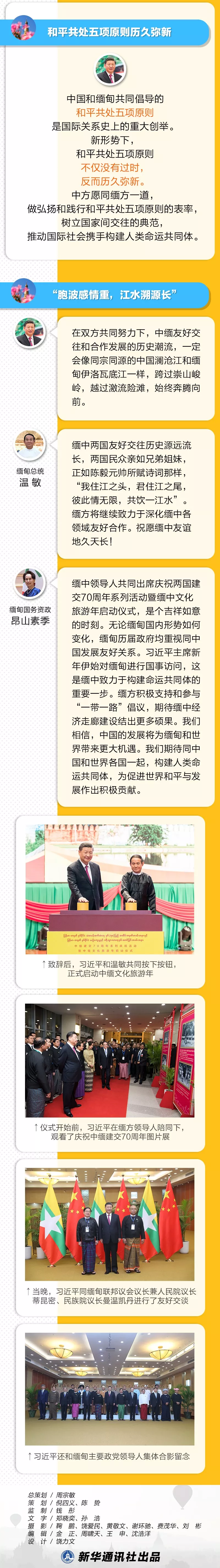 1月17日,國(guó)家主席習(xí)近平抵達(dá)內(nèi)比都,開(kāi)始對(duì)緬甸進(jìn)行為期兩天的國(guó)事訪問(wèn)。第一天行程滿滿,其中一項(xiàng)重要活動(dòng)就是,出席中緬建交70周年慶祝活動(dòng)暨中緬文化旅游年啟動(dòng)儀式。習(xí)主席和緬甸總統(tǒng)溫敏、國(guó)務(wù)資政昂山素季在儀式上分別致辭,其中信息量滿滿。