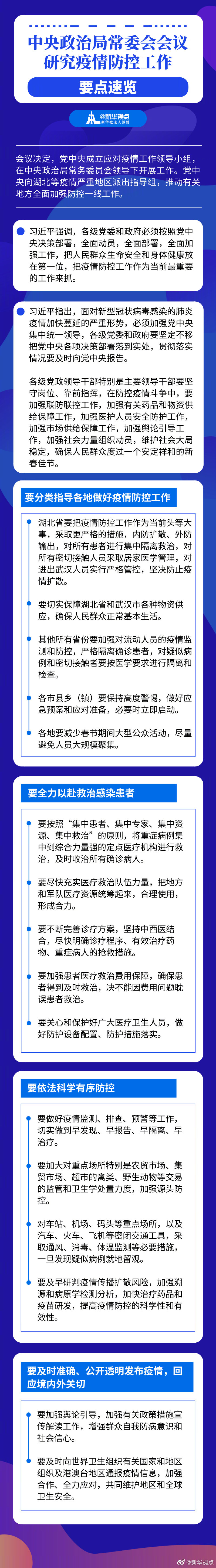 中共中央政治局常務(wù)委員會25日召開會議,專門聽取新型冠狀病毒感染的肺炎疫情防控工作匯報(bào),對疫情防控特別是患者治療工作進(jìn)行再研究、再部署、再動員。習(xí)近平總書記主持會議并發(fā)表重要講話。