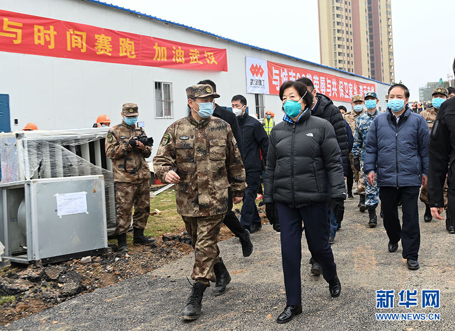 2月2日,經(jīng)過(guò)連日奮戰(zhàn),武漢火神山醫(yī)院正式移交給解放軍醫(yī)療隊(duì)管理使用,并將于明日開(kāi)始接診患者。受習(xí)近平總書(shū)記委托,中共中央政治局委員、國(guó)務(wù)院副總理孫春蘭率中央指導(dǎo)組實(shí)地察看醫(yī)院設(shè)施設(shè)備等情況。 新華社記者 陳曄華 攝