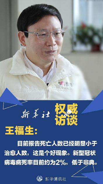 王福生:死亡人數(shù)現(xiàn)在已經(jīng)比治愈人數(shù)少,這是一個好的現(xiàn)象。但總的來說,死亡人數(shù)主要是來自于新型冠狀病毒感染的重癥病人和危重癥病人,總體病死率也就在2%左右,并不是特別高。