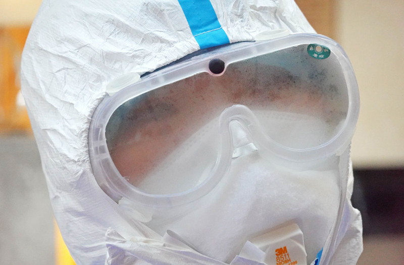 每次出門采訪都如臨大敵:先換好外出的衣裳、戴好醫(yī)用手套、戴好護(hù)目鏡,然后再小心翼翼地在臉上加上一個(gè)或兩個(gè)口罩,在門口換上出門的鞋,最后再背上采訪設(shè)備——每次做完這些的時(shí)候,作為胖子的我身上已經(jīng)開始冒汗并且氣喘吁吁。如果要去醫(yī)院采訪,有時(shí)候還要再穿上一件防護(hù)服。這樣的裝備,出門走一圈其實(shí)已經(jīng)很難受了,而我還要隔著不斷產(chǎn)生霧氣的護(hù)目鏡拍照,要不斷地移動(dòng)、尋找最好的拍攝角度和位置,采訪的時(shí)候更要記下一個(gè)個(gè)口罩后面的名字、故事......這樣的采訪狀態(tài)對(duì)我而言,從未曾經(jīng)歷過(guò)——多年前,我曾在利比亞做過(guò)戰(zhàn)地記者,也曾被武裝分子用槍指著腦袋,但這次在武漢,我不知道那些危險(xiǎn)的“敵人”究竟藏在何方,也許就在無(wú)處不在的空氣里!