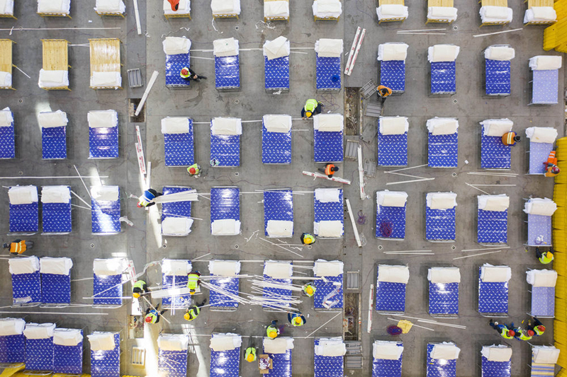 2月4日,改造中的武漢客廳內(nèi)部,它將被改造成為一所“方艙醫(yī)院”,以收治新型冠狀病毒感染的肺炎輕癥患者為主。