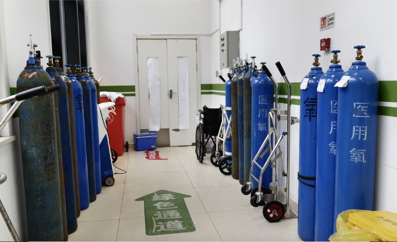 “笑笑,今天的氧氣罐多少個(gè)?”“32個(gè)。”宋笑笑和另一名護(hù)士在走廊盡頭清點(diǎn)氧氣罐后,發(fā)現(xiàn)已經(jīng)空了6瓶。