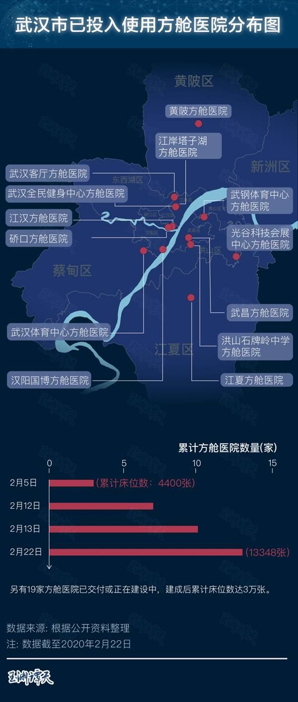 不到1個月,武漢新建了16家方艙醫(yī)院,開放床位13000多張。現(xiàn)在,方艙空余床位有5600張。