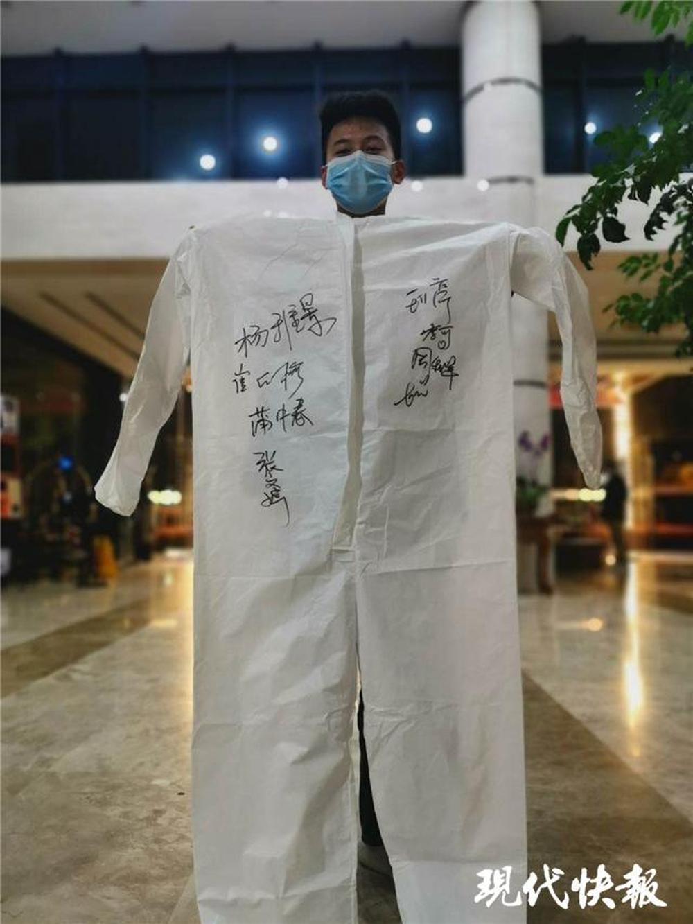 “其實他們都比我大,叫我強哥都不敢應。”陳強靦腆地笑著。陳強還展示了一件特殊的防護服,上面寫滿了他接送的醫護人員名字?!拔蚁M词顾麄冏吡?,我也能記得他們?!?/p>