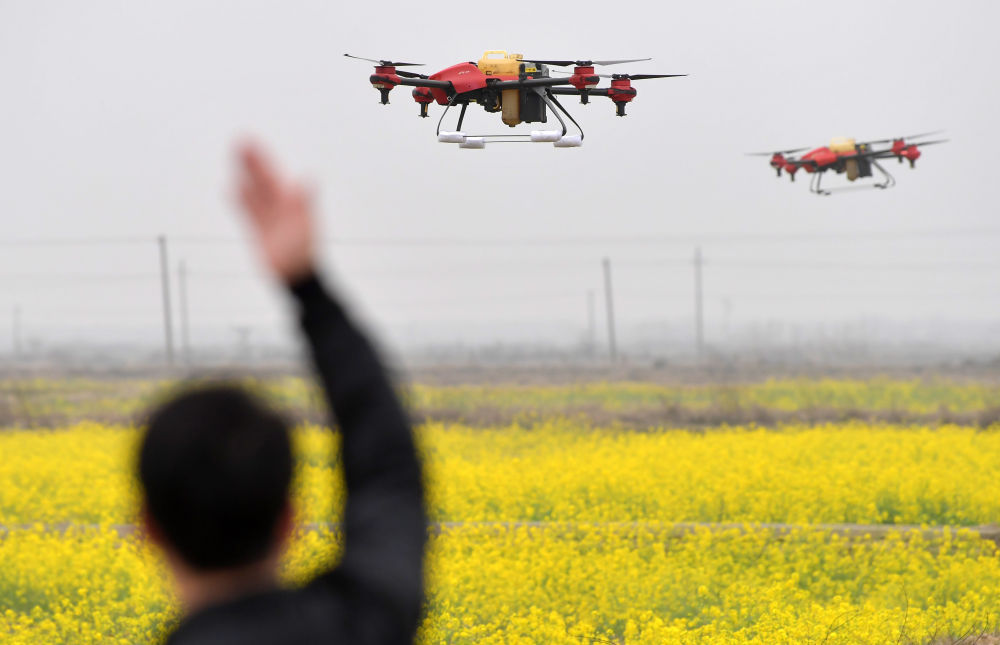 在江西省南昌市南昌縣蔣巷鎮(zhèn),無人機在對油菜田進行植保作業(yè)。新華社記者 彭昭之 攝