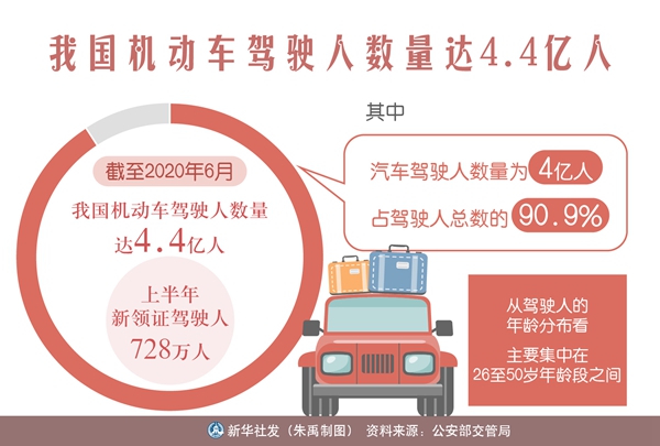 新華社北京7月18日電(記者劉奕湛)公安部交管局日前發(fā)布數(shù)據(jù)顯示,截至2020年6月,我國機(jī)動車駕駛?cè)藬?shù)量達(dá)4.4億人,上半年新領(lǐng)證駕駛?cè)?28萬人。