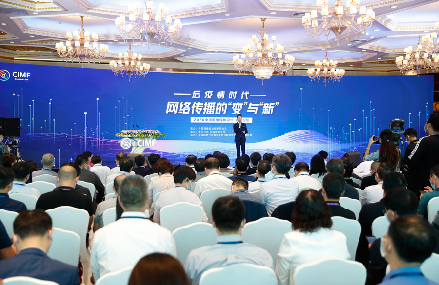 ??? 9月27日,2020中國(guó)網(wǎng)絡(luò)媒體論壇內(nèi)容論壇在上海舉行,各界嘉賓圍繞“后疫情時(shí)代網(wǎng)絡(luò)傳播的‘變’與‘新’”這一主題開(kāi)展探討和交流。圖為論壇現(xiàn)場(chǎng)。