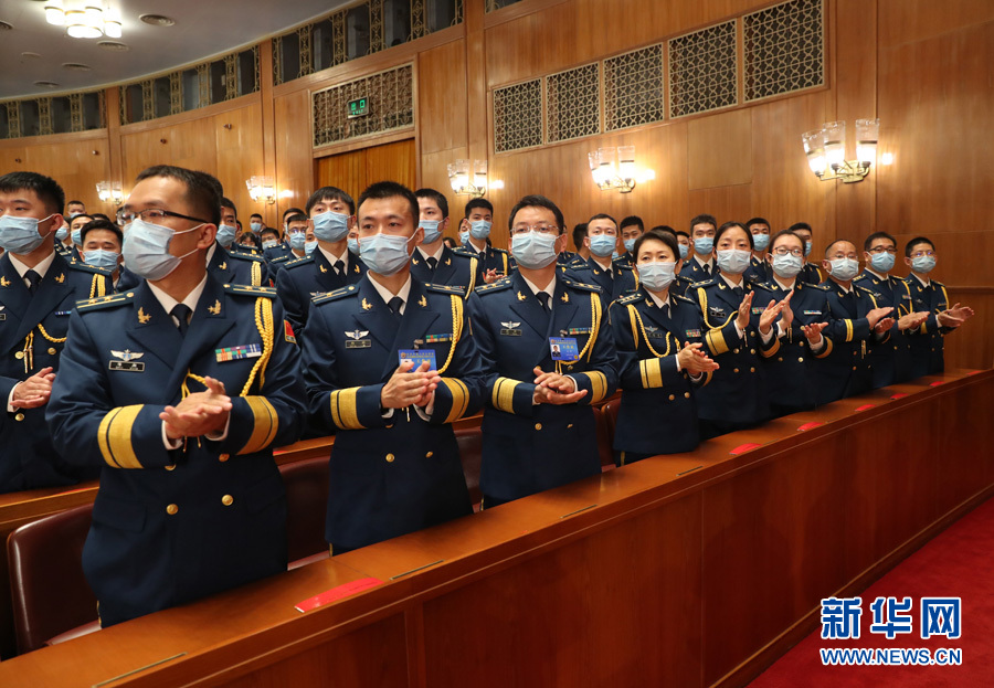 ??? 10月23日,紀念中國人民志愿軍抗美援朝出國作戰(zhàn)70周年大會在北京人民大會堂隆重舉行。圖為志愿軍老戰(zhàn)士、老同志入場時,大會現(xiàn)場的解放軍和武警部隊官兵代表起立鼓掌。(新華網(wǎng) 翟子赫 攝)