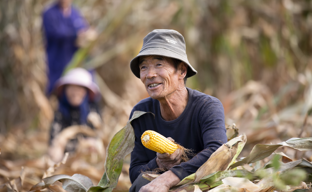 ????現在,精準扶貧為甘肅會寧縣解決了持續供水難題后的豐收情景。2019年9月16日,甘肅省會寧縣丁家溝鎮當地農民非常感謝中國投資有限責任公司大大改善當地嚴重缺水的情況,正在熱情地向掛職扶貧干部介紹今年的玉米長勢喜人、水果豐收在望。