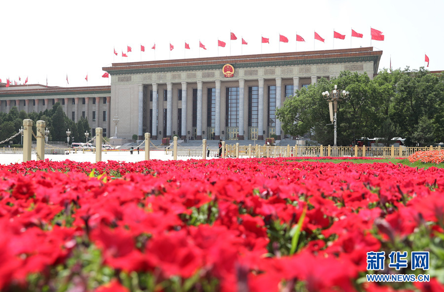 ??? 5月28日,第十三屆全國人民代表大會第三次會議在北京人民大會堂舉行閉幕會。這是人民大會堂外景。 新華網 翟子赫 攝