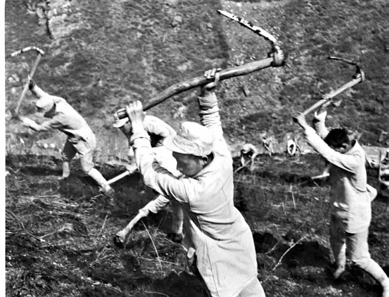 晉察冀邊區(qū)的八路軍指戰(zhàn)員一邊戰(zhàn)斗,一邊開(kāi)荒生產(chǎn)。 新華社圖片