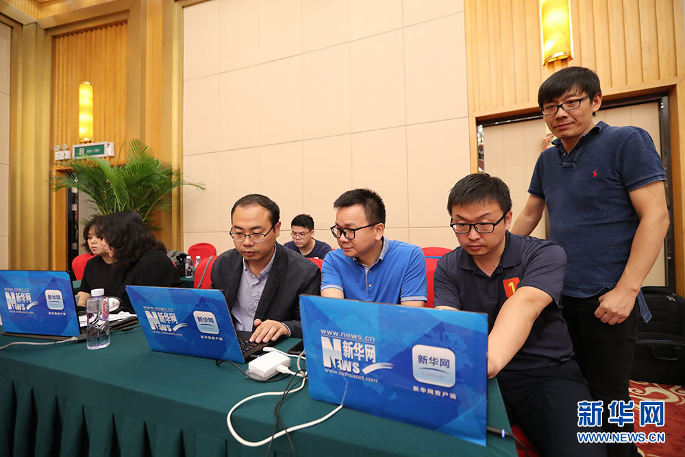 ??? 9月24日,慶祝中華人民共和國成立70周年活動新聞中心在北京梅地亞中心二層新聞發布廳舉辦第一場新聞發布會。圖為新華網對新聞發布會進行網絡直播。新華網記者 陳競超 攝