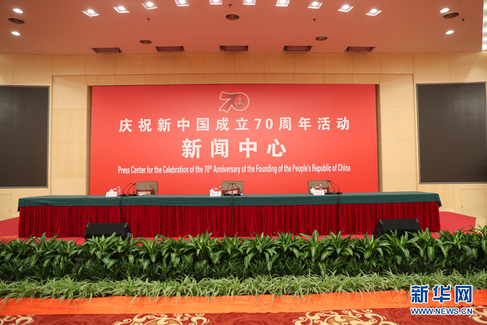 9月27日,慶祝中華人民共和國成立70周年活動新聞中心在梅地亞中心二層新聞發(fā)布廳舉辦第三場新聞發(fā)布會,中央農(nóng)村工作領(lǐng)導(dǎo)小組辦公室主任、農(nóng)業(yè)農(nóng)村部部長韓長賦,國務(wù)院扶貧開發(fā)領(lǐng)導(dǎo)小組辦公室主任劉永富介紹全面建成小康社會,扎實(shí)推進(jìn)脫貧攻堅和鄉(xiāng)村振興,并回答記者提問。圖為發(fā)布廳現(xiàn)場。新華網(wǎng) 陳杰 攝
