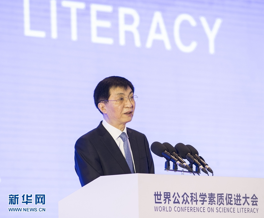 王滬寧表示,習(xí)近平主席專門發(fā)來賀信,充分肯定本次大會的重要意義,高度評價增強(qiáng)公眾科學(xué)素質(zhì)對構(gòu)建人類命運共同體的重要作用,體現(xiàn)了對增強(qiáng)公眾科學(xué)素質(zhì)的高度重視。習(xí)近平主席歷來高度重視科技創(chuàng)新和科技事業(yè),強(qiáng)調(diào)科技創(chuàng)新有賴公眾科學(xué)素質(zhì)的提升,要把科學(xué)普及放在與科技創(chuàng)新同等重要的位置,普及科學(xué)知識、弘揚科學(xué)精神、傳播科學(xué)思想、倡導(dǎo)科學(xué)方法。中國高度重視科學(xué)普及,頒布了科學(xué)技術(shù)普及法,為中國人民提供了便捷的科普服務(wù)。