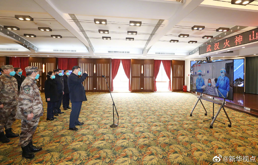 “你們都穿著防護(hù)服、戴著口罩,我看不到你們完整的面容,但你們是我心目中最可愛的人!”在武漢火神山醫(yī)院,習(xí)近平總書記同正在病區(qū)工作的醫(yī)務(wù)人員代表視頻連線,“我在電視里看到一些畫面,你們摘下口罩后,臉上傷痕累累,看了讓人心疼。你們是最美天使,是光明的使者、希望的使者!”(文字:張曉松、朱基釵 攝影:鞠鵬,謝環(huán)馳)