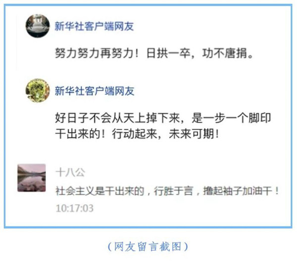 “行勝于言。社會(huì)主義是干出來的,各族群眾要一起努力。”網(wǎng)友認(rèn)為總書記的這一指示傳遞出強(qiáng)大力量,感召和激勵(lì)全國(guó)各族人民砥礪奮進(jìn)。