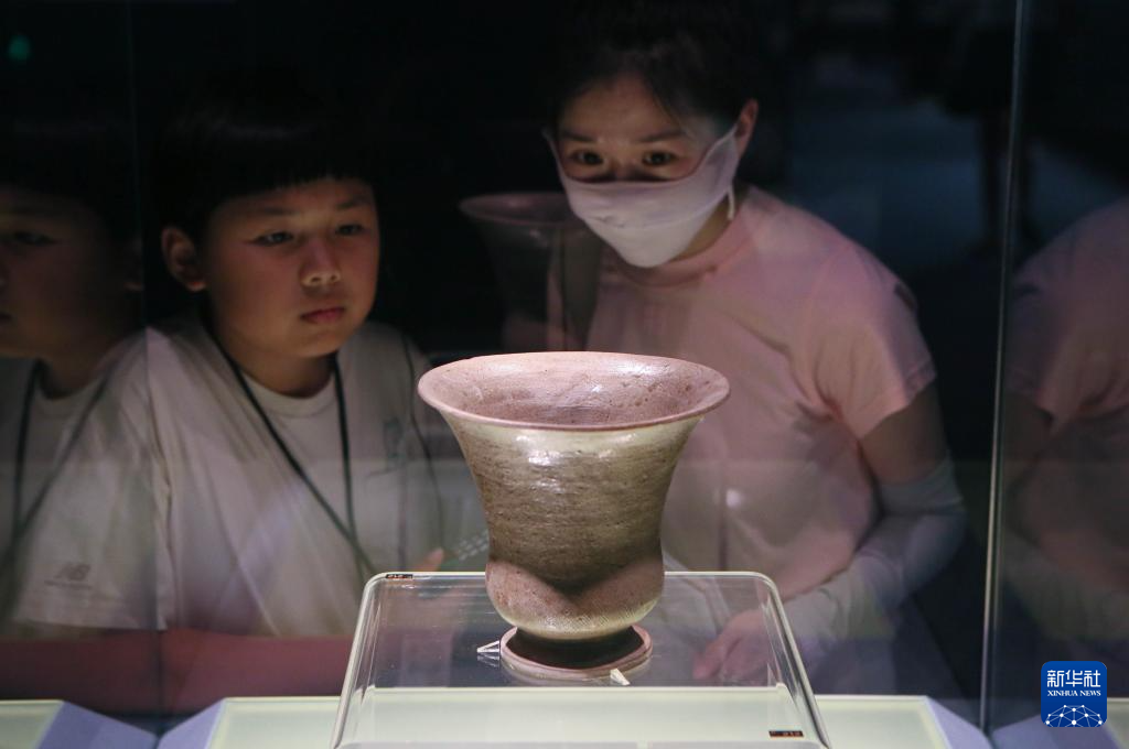 7月14日晚,小朋友在上海博物馆的中国古代陶瓷馆观看展品。