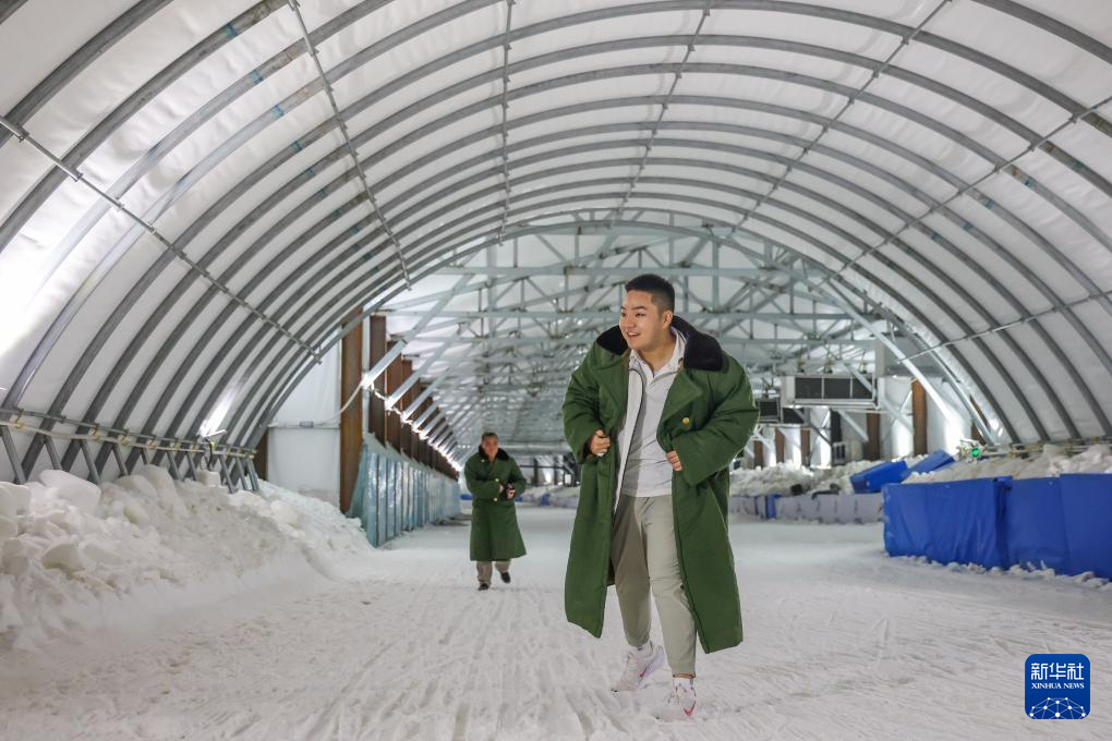 8月17日,王剑书体验河北承德国家雪上项目训练基地的四季训练馆雪道。