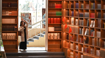 10月19日,参观者在陕西省美术博物馆欣赏艺术作品。