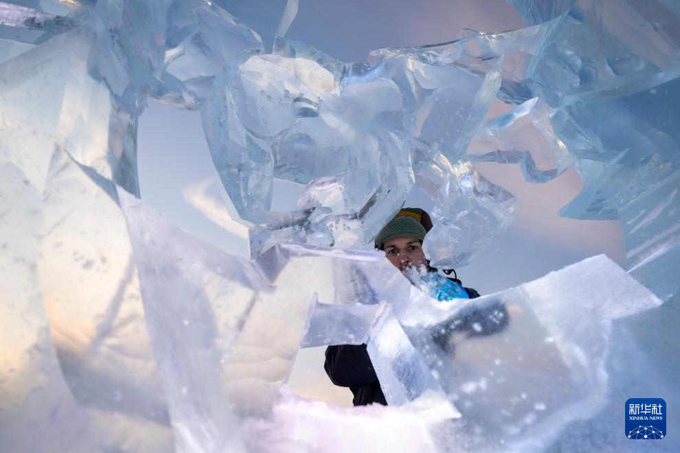 1月3日,在哈尔滨冰雪大世界进行的第37届中国·哈尔滨国际冰雕比赛进入第二天赛程,来自12个国家的76位选手在严寒中精雕细琢,参赛作品已芳容初现。
