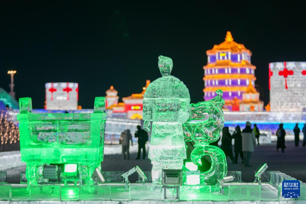 近日,一批冰雕新作在哈尔滨冰雪大世界亮相,与第37届中国·哈尔滨国际冰雕比赛作品及园区原有冰雕遥相辉映,共同点亮北国冬夜。