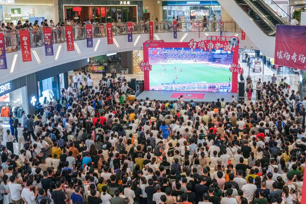 6月29日,市民、球迷在南通市一商场内设置的“第二现场”观看“苏超”比赛直播。新华社记者 李博 摄