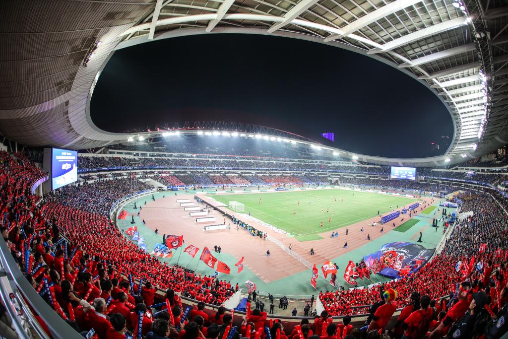 11月1日,“苏超”决赛现场大屏幕显示共有62329名观众观赛。新华社记者 李博 摄