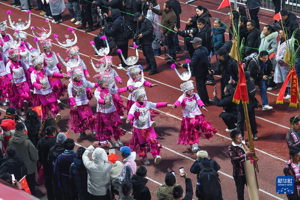 1月2日,苗族群众参加第四届贵州“村超”开幕式巡游。
