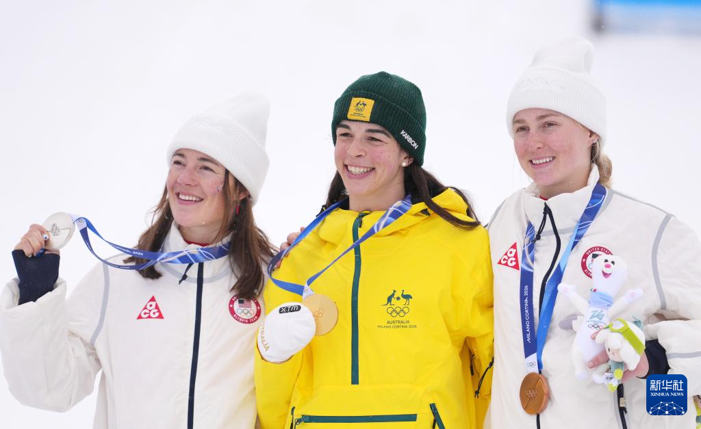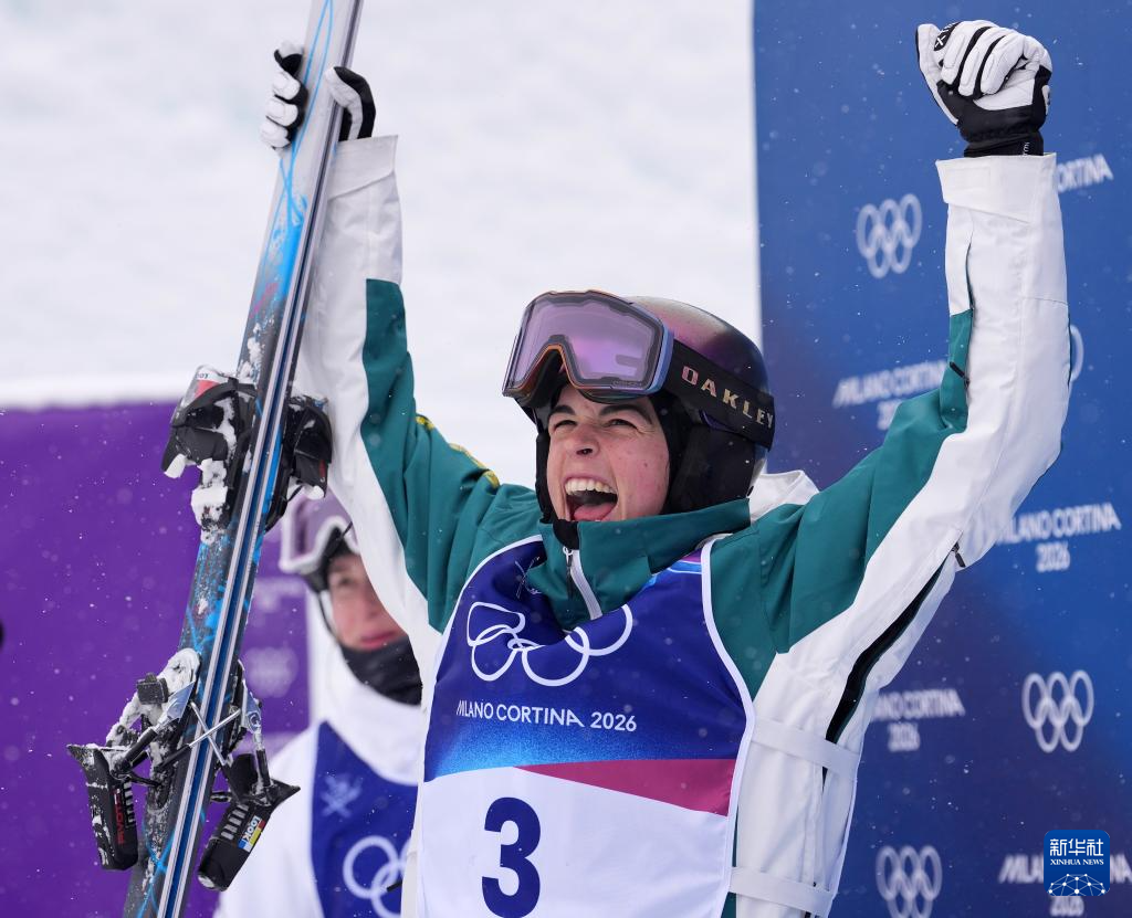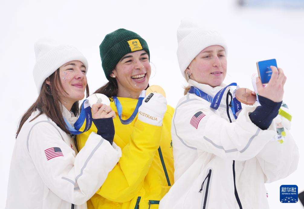 当地时间2月14日,在意大利利维尼奥举行的米兰-科尔蒂纳冬奥会自由式滑雪女子双人雪上技巧比赛中,澳大利亚选手安东尼获得冠军、美国选手考夫和莱姆利分别获得亚军和季军。
