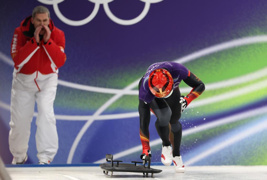 当地时间2月13日,米兰-科尔蒂纳冬奥会钢架雪车项目男子组比赛在意大利科尔蒂纳举行。