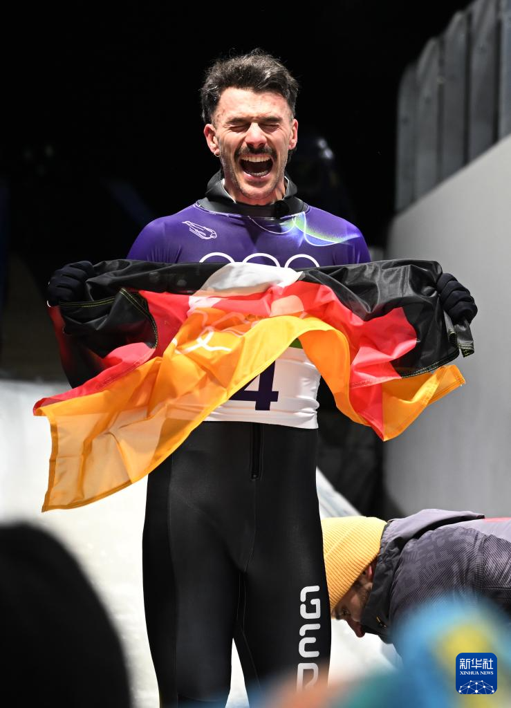 2月13日,亚军德国选手容克在比赛后庆祝。
